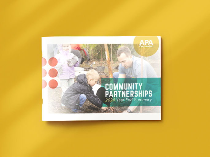 Designed APA Corporation’s Community Partnerships booklet, transforming data and impact stories into a polished, engaging corporate publication.